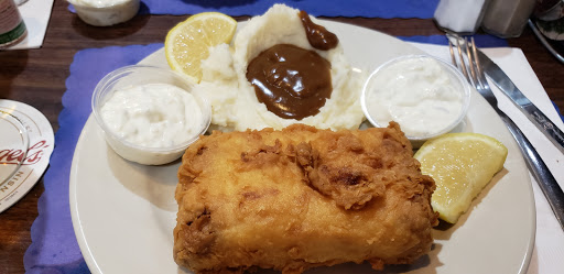 Consistently Good Food. Home of the fish log. Weve been eating here for 25 years and the quality has been about the same. The hot slaw smothered with bacon bits, the mock turtle soup and the chicken livers are all worth trying. The staff is friendly and since the place is usually crowded the service can sometimes seem slow. But its not fast food its good food.