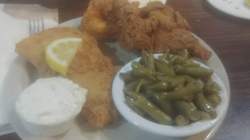 Everything over cooked in oil that the owner put in the fryer on opening day some 60 years ago. The "breading" on most of the offerings had no seasoning whatsoever so salt and pepper from the shakers on the table was the only alternative. The end result was bland (as served), salty and or peppery depending on the lighting at you particular table. The mashed potatoes came from a box and the green beans (vegetable of the day..... I mean century) came from a foodservice can. On the bright side our waitress was bright and energetic and made pulled our visit to Lake Nina from 0 stars to 1.