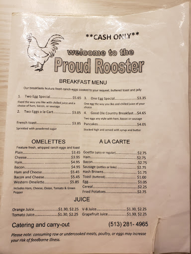 My boyfriend and I were regulars at proud rooster when we went to UC. The best breakfast place in Clifton! Food and service are always amazing. Our one waitress has been there the entire time weve been going and shes always so friendly. Meal for 2 usually costs us $16 total. Highly recommend