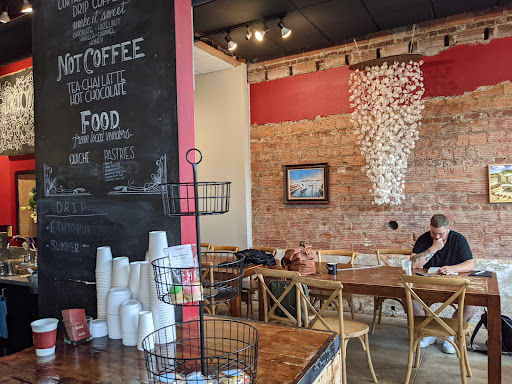 Hadnt been here in a while when I met a business partner for coffee here about a week ago. I was reminded of the cool vibe, a great mix of coffee (and light eats) and graphic arts. I wouldnt mind if they had a stronger dark roast, but this is a cool place with wonderful staff. Worth supporting.