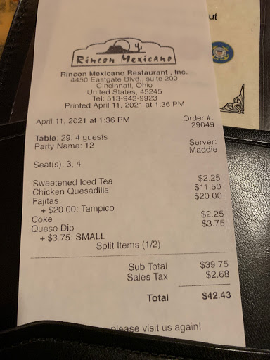 Tall blonde Tyler was the best server I have ever had at a restaurant in my entire life!! The food was extravagant and I will order the carne asada burrito everytime. I will return to Rincon Mexicano in the near future. I highly recommend. I only wish they had more solo trumpet performances.
