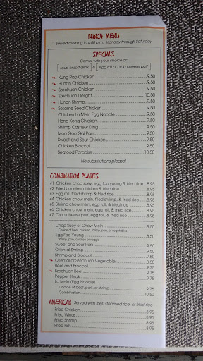 Reviewed 09/04/15 TLDR: The food was OK but not great. Sometimes bland. Service was mixed but overall very nice. Location is well styled inside but hidden away in an old shopping center. I probably would not return. Food: I tried just about everything they had. It wasnt hard because they had maybe 20 items max to choose from excluding desserts. All the chicken such as General Tso and Sesame Chicken were 90% breading. The brown rice and white rice were plain but cooked well. The lo mein was lacking in flavor. As was the egg rolls. What I didnt try was either unappealing or they were out of it. They put out very little of each food at a time. Maybe enough for two to three people. Service: The assumed owner was at the register. Did not greet me when I walked in, but was ringing a customer up. I was unsure of whether it was self sit or if I needed to wait for a waitress to seat me. Finally a waitress walked into view and waved me to be seated. She was nice and curteous. Location: It is located in an old shopping center that is 50% vacated. There looked to be several cars in front of the area of parking for the restaurant but apparently they were patronizing an establishment next door as the restaurant was practically dead. The interior was well decorated for a Chinese restaurant in a shopping center. The booths and tables looked new or well cared for. Lighting was good and quiet Chinese music playing in the background. Two flatscreens with the food network of mute. A cheap fishtank with some pretty fish. Plenty of four person booths and a couple tables for larger groups off to the side.