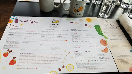 Sleeping Bee was suggested by a local and definitely a great recommendation. The place is obsessed with bees (not the live ones). The entire atmosphere is bee-fied. If you are in Cincinnati area, this is definitely the place to be for a breakfast, brunch or lunch. We went on a Saturday late morning and the place had a good half an hour waiting. But with a recommendation and great reviews already, we thought it would be worth it. And it was. Food: Their menu is quite extensive and a lot of options for vegetarians as well. We went for a single Apple Cake Pancake, Warm Quinoa Bowl and Roasted Beet Sandwich (with a side of Roasted Sweet Potatoes) along with Big Orange Splot and Grapefruit Juice. Warm Quinoa Bowl was simply amazing. Aesthetically, it was very appetizing and we enjoyed every bite of it. In terms of portion, it might a bit too much for a single person. Its best shared. Roasted Beet Sandwich was one of the best we had in the US yet. The idea of keeping beet as a hero of the sandwich is a big gamble and it paid off. Sourdough bread was great and I couldnt think of a better bread to go along with it. Apple Cake Pancake was good. However, the almond+quinoa+buckwheat flour lacked the strength to hold the pancake together. So, it made the whole pancake very brittle and almost impossible to eat with knife and fork. Luckily, we had spoons ;) Ambiance: This place shouts "bee" everywhere - even in the restrooms. The theme is quite confusing as you have a brick wall at one end that gives it a rustic look but the rest of the place has a very contemporary styling. On each wall, you will find something or the other related to bees - a trivia or just a painting. But everything is related to bees. It seems to be getting a lot of young crowds, which I believe is due to good pricing and availability of smaller portions. Perhaps why, iIt is quite noisy, especially during peak hours. Staff: The staff was great. Although the guy attending us was a little more excited than normal but there werent any gaps in the service. Overall, it was a great experience. Definitely up my list if I am contemplating a great breakfast on a lazy weekend.