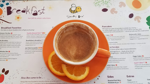 It is pretty pricy for what you get. Service is usually good, but it takes a while to get a table and the kitchen tends to be slow. The coffee is mediocre at best. It has really nice upscale touches (like custom art), but the actual experience of eating there is more like eating in a cafeteria. The kitchen is open to the dining room and there isnt a soft surface in sight. You cant hear anything over the noise. The best thing about Sleep Bee, though, is that they really seem to care about how the ingredients are sourced. If ethical eating is important to you, youll like Sleepy Bee.