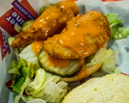 I love the always tasty tenders and the best dipping sauce in town. The staff seems to always have a smile on their face. Only negative would be a sticky floor, probably from the rug in front of the self-serve soft drink station.