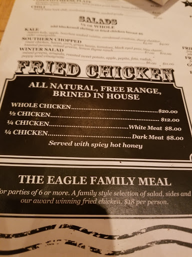Okay Im giving this place a one star for a couple of reasons. We get to the Eagle for lunch on a Thursday. Were told at the counter it would be 20-25 "if that minutes" for an open table. A couple sitting outside checks out and leaves. A party if two walk up and ask a waitress, not the hostess if it was okay to sit there. She tells them yes. They get seated without a wait. 35 mins go by and my phones goes off. Our table is ready. They hostess tells the manager "just seat them anywhere"....so she seats us with a party already mid-meal.... Okay so why did I just waste 35 mins waiting for a standalone table. I told the manager that was going to work, and he said" if you want to here this is going to have to work" but I didnt want family style seating. So I tell the manager "Im a Google Local Guide and I will be giving this place an unfavorable report" The hostess over hears me and offers us a standalone table.... Okay so why didnt I get that to start with.... So I walk outside and the manager ask he can give me a standalone table and comp my meal. I told him I just wanted money for parking and he told me he couldnt do that. Which makes no sense.... You can comp a meal for two but not six bucks for parking..... I cannot remember comment on the food since I never ate it. But their attitude is pretty piss poor. And thus the one star....