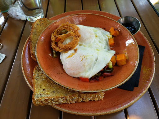 Good breakfast but the service was quite poor. Saturday morning was a little busy but Ive been to busier places with much better service. Keep an eye on your server as he can disappear for long periods of time. It took them quite a while to bring us our checks at the end and then to collect them as well. The food was delicious (egg wraps with peppers). Parking is always a pain due to the layout of the square itself (not really their fault).