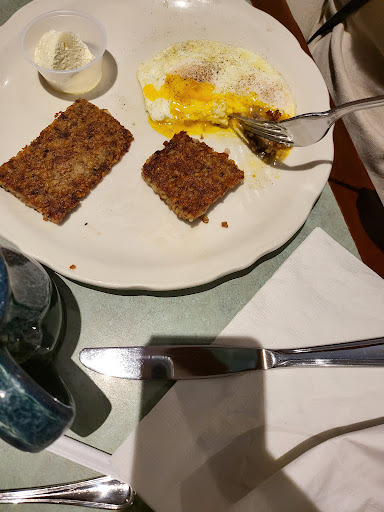 Exactly what I wanted out of a cheap brunch spot! The hostess was really rude didnt even look at us as she sat us. However, our waitress was fantastic! All smiles, fast, no mistakes, and just all around friendly. My boyfriend and I both ordered pigs in a blanket... soooo good and the perfect portion to not make you totally hate yourself when youre done! We also got a side of potatoes. This "side" is huge. More like a shareable dish! The vibe is old school and casual for family. Not like a trendy, upscale kind of place. So, no mimosas or anything like that.