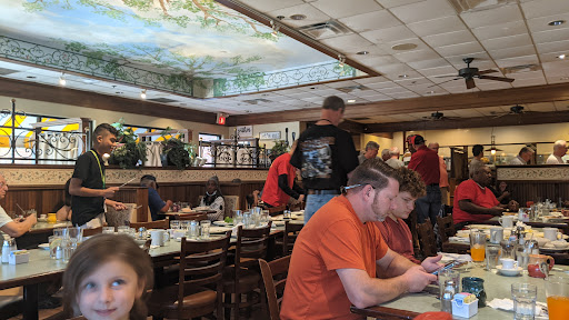 We went to the Montgomery location on a Saturday about 12:30 thinking we would miss the breakfast crowd. The restaurant was packed, but we only had to wait a few minutes before being seated so things were looking up. We had to wait at least 15 minutes before our server ever came around to take our order. We waited forever for our food (like 45 minutes) - at first we didnt mind because we were sipping coffee and talking. Then we ran out of coffee and sat there for another 15 minutes before we could flag down our waitress to get a refill. Food finally comes and they messed up my order, waitress takes it away and it is another 10 minutes before I get what I ordered. Finish eating and are waiting for our check and coffee refills, again no sign of our waitress. Sit there waiting and waiting, finally get our check and then have to go stand in line to pay and wait ANOTHER 10 minutes just to pay our bill. Finally get up to the register to pay and I tell the lady ringing us up that we had bad service, and she says oh we get a lot of complaints about that waitress.....um, ok. I would have preferred her say, Im sorry, what can we do to make it right, etc. It sort of felt like a slap in the face. Overall the food was ok but nothing to write home about and the prices were steep ($9 for a waffle that doesnt come with any sides??). Save your money and go to Frischs!!! Usually Im a supporter of mom and pop places over chains, but you are making it too hard! YIKES!