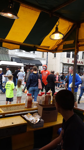 Great atmosphere. Plenty of room. Nice shops around the area. Wonderful food. I had the pulled pork on a pretzel bun. Yummy!