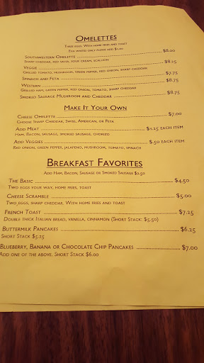 Large menu to choose from, and when you cant make up your mind, they always have chocolate chip pancakes!