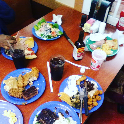 NEVER AGAIN !!my mom now has food poisoning!! Worst mistake I did was go there, food is absolutely horrible ,I mean who cooks this trash ? The desserts was beyonde nasty ! The pudding taste like water and still had powder lumps in it ,cheesecake taste like thick salt ,ice cream taste like sugar water , completely disgusting ,there food was either over cooked or under cooked no taste ,the cheese for the chips was lumpy ,only thing good was the yeast rolls paid a lot of money to only be happy with the rolls ,I went yesterday 10/8/16 to the one on Brook park ,smh HORRIBLE