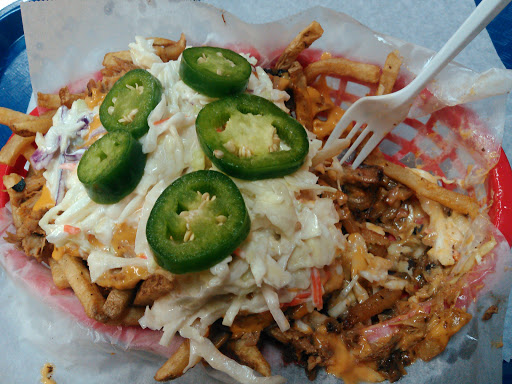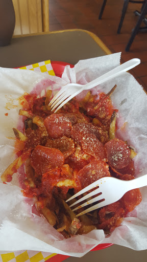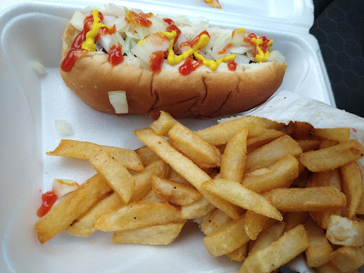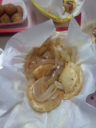 This place looks creepy from the outside, and its crappy on the inside. The fries give me the worst stomach aches, their hotdogs arent any bigger than the ones they sell at the stadium on dollar dog night, and the owner talks to people like hes running some fortune 500 company. Call a spade a spade, its a dinky little hotdog place that doesnt do anything special, and claims their peirogis are home made by locals, when in reality Ive seen the owner at GFS buying them. Get real.