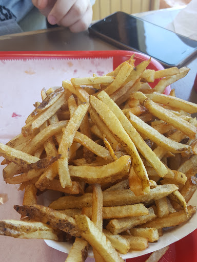 Fun local restaurant. Check the hours before you go. The owner clearly loves what he does, which makes everyone feel good. Generous helping of fries, which youll want in order to try all the homemade dipping sauces. I would LOVE a veggie dog option.
