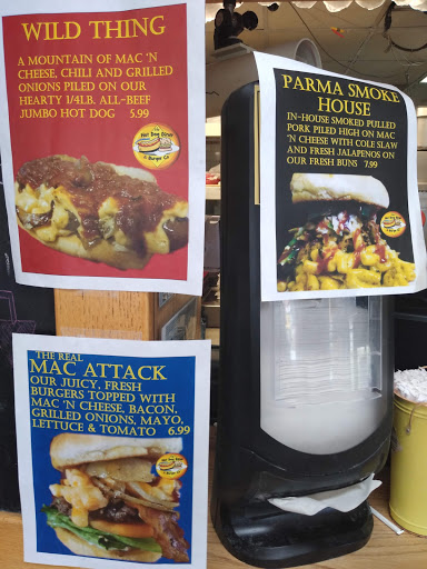 Slaw dogs, chili dogs, Coney dogs and probably another 20 plus variety of hot dogs.. Burgers are enormous.. however so are the prices!( bring your CC and checkbook) . Nice little quick spot to eat. . Formerly a Taco Bell.. Seating is a little crammed.. But I like it and its different.