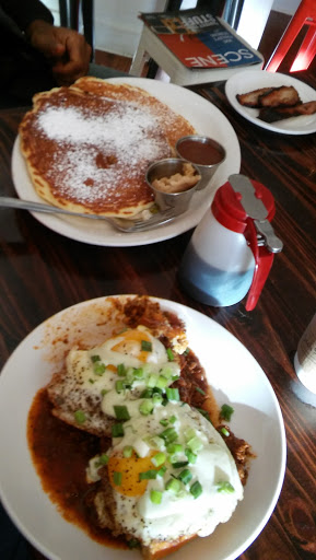 Came here with a friend during their happy hour (an hour before they close). Pancakes and waffles are only $5! We decided since it was so cheap (happy hour) wed get a typical breakfast of eggs, sausage, hash and then get a pancake on the side. All I can say is wow. First, eggs were cooked perfectly. I cant stand undercooked eggs, its gross, so they were on point here. The sausage was outstanding. They added something green to it give it a freshness and it was not greasy. The hash was great, we both tried their root hash and i couldnt be more pleased. Skip the potatoes and get this, you wont be disappointed. Last....the pancake. I got the lemon curd and berry pancake and was happy with my choice. I couldnt even eat half because of the big breakfast and this pancake mix as huge! Great flavor combination of a sour type of lemon curd and a sweet berry compote.