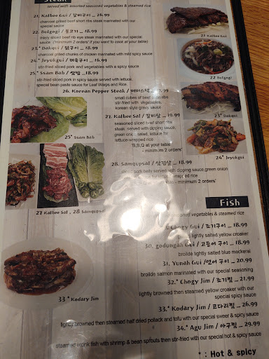 Over 60 different kinds of menu are there and I tried like 15 different kind and I love them all I was a nut not to try korean food before I spent too much money for Chinese and japanese food although I could not have a table right away bcause there are too many customers but it was worth to wait I hope april is coming soon so I can have an autograph from choo in cleveland indians who is coming this restaurant regularly