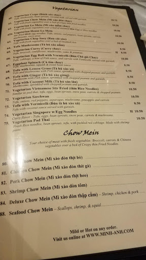 Minh-Anh isnt bad but its VERY overrated. Almost all of their dishes are soupy either or goopy. Their saving grace are the spring rolls and fried rice in my opinion. Pretty much everything else is okay or forgettable.