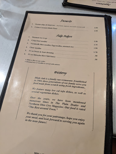 How sad Minh Anh is just a name. How can one mess up chicken fried rice? Dont waste your time or money there food is now food court quality. How sad Ive been going there since they opened. Back then when Cleveland had not yet become a food town. They were bold, original: a wonder to behold. Now they are nothing but a name with a so what attitude.