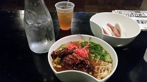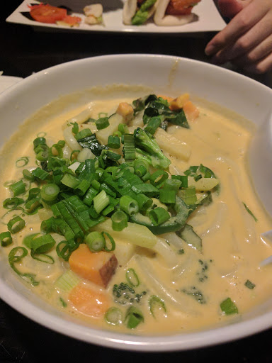 So service was good and the atmosphere is pretty good too. Nice music. The buns are okay but the main dishes... Wow. Ive never felt so displeased with food. The brussel sprouts were overcooked and over salted. The noodles.. I had the curry with house noodles. It was like eating this bizarre pasta Alfredo with a curry flavor. It was very thick which is not something i was expecting for a noddle place.. I thought it was going to be some sort of curry broth. The tofu wasnt treated in any way either. It was just chopped up tofu and it was bland and mushy. I normally love tofu. I was still pretty hungry when I stopped eating... It was that bad