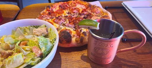 Pretty decent pizza. Good crisp crust. Service was good. However, most tables are high tops with uncomfortable industrial metal stools and oddly shaped live edge tables. We had to ask to move to a real table. Pizza Fire across the street actually has better pizza for less if you dont mind the more informal fast casual atmosphere.
