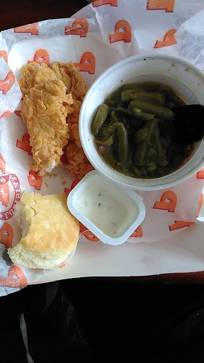 We went in and ordered a 16 piece chicken, 3 giant fries and 20 biscuits. We had our order quickly and with friendly service! And you cant beat the food no matter what Popeyes you go to