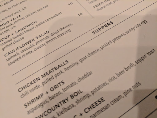 Daaaaamn, SOHO, where have you been all my life? A family friend told me they have the best chicken & waffles in town, but Id just never made it over to try them. On our six-month marker, my boyfriend surprised me with dinner here; because it was a Tuesday night, we were seated quickly, & though there were a few other tables filled, the ambiance was generally quiet & low-key. We split the Jalapeno hushpuppies served with "comeback sauce," which our served described as "Probably a mix of mayo & ketchup?" It was better than it sounds, I promise, & the hushpuppies were perfect - lightly spicy, very crispy, & not too dry, like hushpuppies sometimes are. We were also served a few pieces of fresh, hot bread with house-made seasoned butter & some kind of jam (I forget what kind) that I wouldve eaten with a spoon if it were an option. Needless to say, we were carbed-up & happy by the time our meals arrived, but wed left plenty of room for dinner. And good thing! My boyfriend ordered his fried chicken "evenin style," served with mashed potatoes, braised collards, & sausage gravy; I,. of course, ordered mine "mornin style," with a rosemary waffle & Ohio maple syrup. The other option, which Id love to try, is "late-night style," with pulled pork mac n cheese, & smoked cherry bbq sauce. I KNOW, RIGHT? Theyre all served with boneless chicken - a breast & a thigh. I dont like dark meat, & getting it with all-white meat wasnt an option, so my boyfriend & I swapped - all-white for me, all-dark for him. A good trade, but I wish I couldve just ordered it the way I wanted it. That said, everything was delicious. The waffle was hot & soft, & the chicken was perfectly done, with the crispy coating so fresh that it was sliding off of the meat. I was too full to eat all of it, but I took one of the breasts home for leftovers the next day. Just as good afterward! SOHO has a number of interesting-sounding items on their menu that Id love to go back to try - but honestly, the mornin-style chicken was so tasty that I dont know if I could bring myself to order anything else! Minus one star for the very slow service, because only one server seemed to be working that night, & she was also playing hostess - crazy! Though she was very friendly & accomodating, the fact that she was flying solo meant the service was understandably under par. Id still go back, but I hope they dont make a habit of being so understaffed.