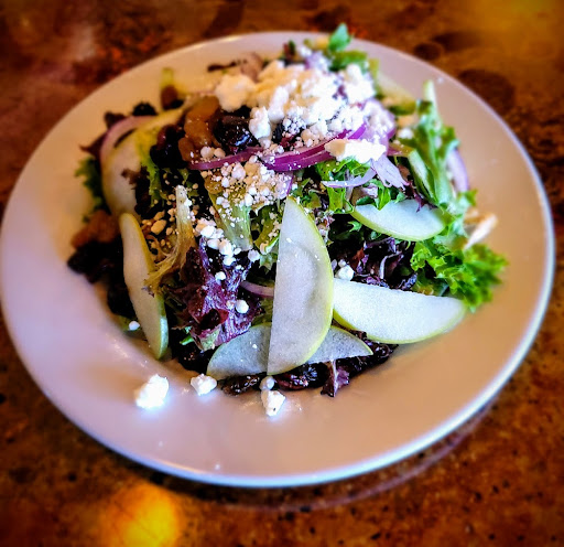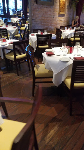 The interior is very dimly lit and if you are there during happy hour, it is depressing. There is nobody actually in the restaurant at that time. Instead people are clustered at the bar, because happy hour only exists at the bar. The same apps and drinks on happy hr special are full price in the surrounding restaurant seating. The happy hour deals are good though ($4 drinks, discount on apps), although the cocktails dont seem to have much in the way of alcohol in them. Ive never been impressed with the happy hrs, though they arent particularly bad. I simply dont remember what I had the first time. But I did go there for a reception with tapas recently, and it was very poorly organized. About 30 min after it started, they finally provided a couple tapas apps. However, they provided no silverware or napkins. One of the items was some kind of corn and raisin salad mixed with curried mayonnaise. Absolutely disgusting, but then again, I dont like mayo. Would have been better dressed in a curry oil. But imagine eating that with your fingers... it shouldnt have taken them that long to realize we would need napkins. And it took longer still for them to realize forks would be a good idea. The other items were hummus and pita chips (which was good, but unremarkable), raw veg, and potato salad.