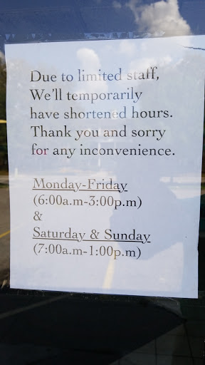 | Working: | 6AM–6PM 6AM–9PM 6AM–9PM 6AM–9PM 6AM–6PM 7AM–3PM 7AM–3PM |