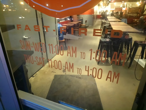 The food here is great. It is a Chipotle-style restaurant, but for pizza! How neat is that? You would think that such a process would take a while, but it really doesnt. Only two minutes or so after you pay and get through the line, you will receive your pizza. Additionally, as a college student, this place is especially great because it is open until 4 AM. Thats right, 4 AM. So if you are a night owl, insomniac or anything in between, you can still get a nice meal in the middle of the night (but be warned, all the other night owls/insomniacs are also getting pizza between 12 - 4 AM, there likely will be a long line)