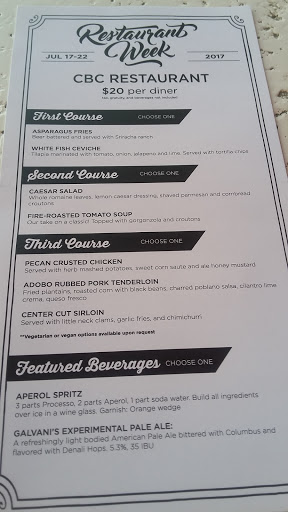I go to CBC often but the last two times Ive gone, the food and service were not great like usual. I call CBC my "go to" place and frequent often due to the spinach dip and wood fired vegetable plate because I know I can depend on wonderful food. The last two times the service was very slow...not well staffed. My food was rather cold when delivered and just did not taste as good. Its as if they have a new chef or something. Now I have to find another place. So disappointed!