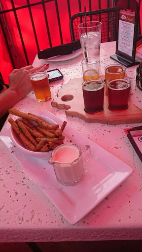 Stopped in after a long Sunday at the Ohio State Fair. Was surprised that they only had one if their namesake beers on tap, although they had a nice selection of other local brews. My biggest complaint is that the food took forever to come out. Half of my partys orders sat under heatlamps for a good 15 minutes before being brought out. And the kids meals were last to arrive, which is a big no no. The server tried to place a scalding hot plate in front of my 14 month old baby. Earlier he had placed a full glass of beer in front of her which we barely saved before it spilled all over her. My burrito was ok, but lukewarm from sitting so long. The place wasnt even that crowded so Im not sure what the problem was. Overall, Im in no hurry to go back.