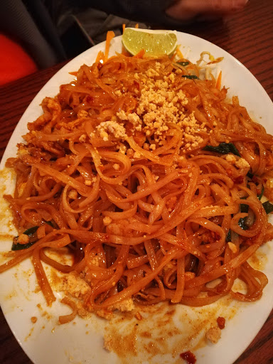 My hobby is Thai food so when I travel I always seek out Thai restaurants. This place has great potential in many ways. I gave it 3 stars for these reasons: 1) phad Thai was to sweet. Cooked w too much sugar. Old school Thai cooks/ owners more often than not simply do not believe Americans will like truely authentic Thai food which is outdated nonsense....twenty years ago that may be somewhat true but today Americans love authentic Thai food. In fact, the more authentic the better and a little research on restaurants that make it authentic will verify this. HINT: Thai owners please just make it the way they do in Thailand and it will be a hit. Only thing you may have to adjust is the heat. All other ingredients should be kept the same and with the same amounts. 2) chicken did seem a little undone and rubbery as mentioned in other reviews. The meal had great flavor and presentation but way to sweet. 3) decor of restaurant was perfect and I will be back to try several more dishes to see what the rest of the menu is like. Also- as a tip to those seeking authentic Thai food a rule of thumb is... Whenever you see a Thai-Chinese restaurant the owners are typically old school and do not believe a Thai only menu would go over so they mix Thai and Chinese and Americanize the dishes with mundane and overly sweet recipes. I will do a follow up. Thx.