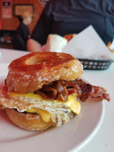 Yum, great food at a great price. It is a hole in the wall kind of place with a wonderful cozy feel about it. This is not a restaurant to go if you are watching calories. I had the Wake Me Up Burger (a burger with cheese, hash browns, thick bacon, over easy egg, tomato, lettuce and onion. I was so full I did not eat anything else for the rest of the day except for a donut that I ordered to go a huge long john with a massive amount of cream in the middle. A true must try restaurant when you want to splurge on calorie rich food, but not from your pocket book this place is dirt cheap.