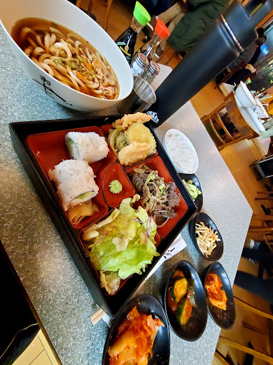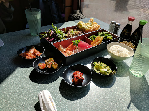 We stopped by to eat lunch at this restaurant, and found it to be of good value and excellent cuisine. The restaurant has a casual theme, with very high ceilings and bright colors throughout. A very clean and cheery atmosphere. Ample parking in the back, and easy to get to for being on OSU campus. We were greeted promptly, and our order taken in a reasonable time after receiving some water. My wife ordered the Diaspora Box Combo. She found it to be delicious. She stated that the tempura fried veggies were the best she had ever had. The beef bulgogi she had with it was very tasty. The california roll was average. Overall she was very happy with the choice. I chose to try the Yook Gae Jang. Its a spicy bowl of broth filled with scrambled egg, beef flank, and an assortment of veggies. The broth was very savory with what I would call "medium" heat. The beef flank was tender and juicy. The egg really set it off with the fern and bean sprouts. Both meals featured ban-chan (Korean side dishes), which was all very good. The assorted kimchis were very, very tasty. They had a more fermented and well-rounded taste that I really enjoyed. The flavor was more full than some kimchi that Ive had at other Korean restaurants. They also had other dishes that I had a hard time identifying, but Im not 100% aware of all Korean types of food. They were all very good though. Next time we visit (which we definitely will), we will try some of the sushi. The sushi menu is extensive, so it might take awhile. I recommend this restaurant for anyone who wants to try out Korean and doesnt want to break the bank.