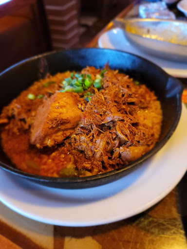 All I can really say about this place is you are paying for the environment more than the food. Almost everything on the menu is way overpriced (and not particularly good). If you want some more authenitc and fresh food, try Chile Verde or a host of others around Columbus. The fajita meat is rubbery and has no seasonings... the "specials" are mostly bland or oversalted. $14 for one of their "specials" which was about 3 oz of sorry-looking chicken in some bland sauce with tortillas, beans, and rice. Oh well, at least they have good queso... If you do go here, I would suggest just ordering cheap, fried things like chimichangas -- its hard to mess those up!