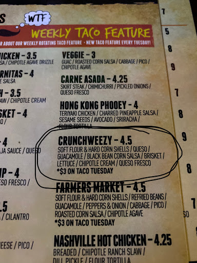 Food specials on Tuesday that I was so oblivious too...duh!!! Great atmosphere in addition to the free chips & salsa. The tacos are amazing, bursting with flavor, while I think they should serve 2 tortillas with every taco. Everything was fantastic.