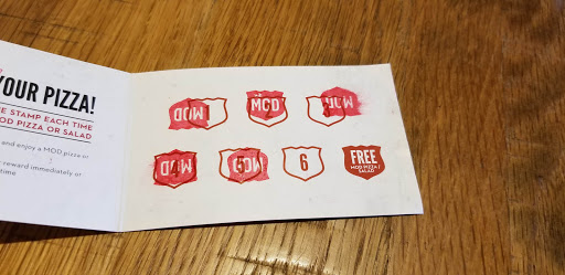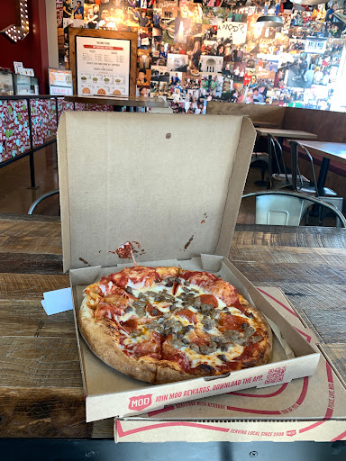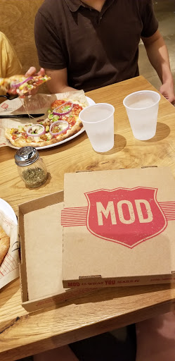 First time at MOD today, and I had an excellent experience! The staff were very friendly, helpful, and knowledgable. Good atnosphere with interesting decor and music is not TOO loud. Menu of "classic" pizzas was expansive enough to accomodate all tastes without feeling overbearing or discouraging creativity. The pizza itself (I got the "Mad Dog" with added mushrooms and tomatos) was fresh, warm, and flavorful. The Garlic Strips side were a delightful counterpoint to the pizza without being too garlicy. All in all, Ill happily come again.