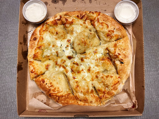 Their pizza is consistently well made I love the thin crust that they make there and the variety of toppings and sauces is great. Staff are pleasant and helpful. Great place to get pizza when youre in s hurry. You can get a good salad as well.