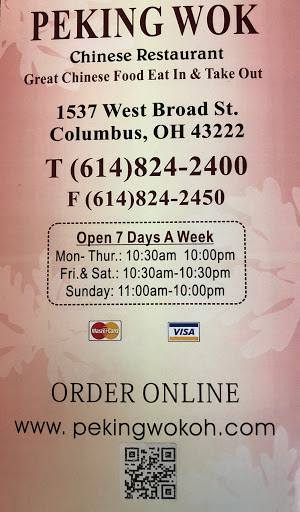 There are two great Chinese restaurant in Columbus, Ohio. This is my favorite. THE PEKING WOK!!!!!!! Thats my opinion.