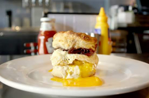 Great breakfast! Dropped in right at opening on a Sunday morning at 9am, greeted with a smile and grabbed a seat at the bar. Less than a minute later had a fresh cup of coffee and was looking thru the menu trying to decide. Chose the traditional, couple eggs, bacon, hash browns, and a couple pancakes, seemed like just a few minutes and there it was, coffee was being topped off and asked if there was anything else I needed. I pretty much devoured, ok inhaled it. When you have a piping hot breakfast presented in minutes of ordering what else is there to do?! Although I tend to stay close to traditional with breakfast I saw some interesting items that looked good too, the guy next to me was chowing down on some huevos rancheros smelled delicious! I could tell there were a large number of locals that made this a Sunday ritual and with good reason. Both the staff and the customers would call each other by their first names and chit chat about the weeks happenings. I really dug the style of the place, setup somewhat like 50s diner with a touch of today, its got that small hometown diner feel thats very welcoming, when you walk in you know youre going to enjoy what ever you decide to order. If I had been in town longer I would have been back to try the biscuits and redeye gravy as that looked as good as it smelled!