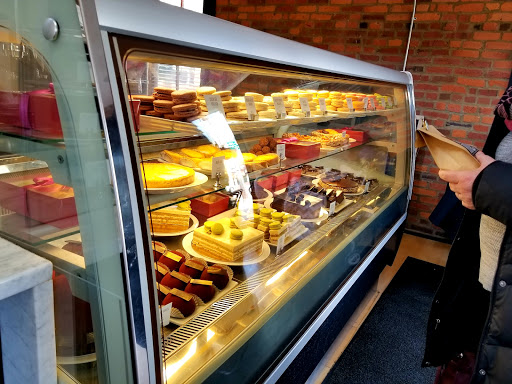 Bumping rating up to 5 stars. I came here with my gf right before closing Saturday night. 1. Coconut guava yuzu chiboust, 24 Layers of coconut buttercake, gava yuzu curd, and coconut meringue mousse with a guava glaze. ~We got a terrine for my friend. Looked delicious, but I didnt get to try it :( 2. Chocolate bombe, 5 Chocolate buttermilk cake with semi-sweet chocolate mousse infused with tawny port, glazed with a chocolate ganache. ~Delicious. It got a bit smashed by the time we got home, but it was still good. 3. Pistachio macaron, 1.25 Pretty good. Not a big fan of macarons, but theirs are good. Tip: they have their own lot across the street if street parking is unavailable