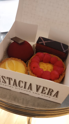 Pros: They offer a wide variety of delicious pastries and confections that will leave you craving for more! The staff is very courteous and the overall service is excellent. The dining area is always clean and inviting. The prices are reasonable; a slice of dessert costs $5 or less. cons: The large desserts (whole tartes, tortes, etc) are pricey but not ridiculous. They cost about 40$ final thoughts: A must try in columbus! I highly recomment their chocolate bombe for the chocolate lovers. Ive been to pistacia vera several times and I have never been disappointed.