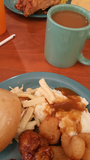 We have been to Ponderosa many times and the last time was yesterday (April 8, 2014) about 4:30 p.m.. Everything was clean, the staff was very nice and professional and the food was delicious. I got small portions of the best meatloaf, fantastic fried chicken, and fried fish (please note all were small portions--I do not over-load my plate and leave waste). I also got a helping of green beans and delicious red potatoes. For dessert, I got some sauteed apples. Delicious! Absolutely delicious. Ponderosa has been a favorite in the past and will continue to be in the future. Almost forgot to give ratings for my husband and mother; my darling husband got fried chicken, turkey, brocolli (spelling?), a very nice salad, and red potatoes as I. He is more of a healthy eater than I but he managed to sneak a bite or two of my fried chicken. My 90-year-old mother got chrispy fried chicken wings (Ponderosa has two kinds: spicy and non-spicy)--she got the non-spicy. She also got mashed potatoes and green beans. Again, everyone loved everything. Upon leaving, our hostess clearning our table and did a fantastic job. Very Nice and friendly management and staff.