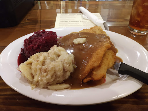 I am originally from Germany (actually from Bavaria) and lived there for 40 years of my life before I came to the US. So when I was visiting Columbus for a few days, I went with my wife for lunch to Schmidts, partially based on the good reviews as well as visiting German Village anyway. So I ordered a Sauerbraten (marinated beef with gravy) and my wife a Wiener Schnitzel. Unfortunately, none of them came close to real German food as I know it. The key for a successful Sauerbraten dish is to marinate the beef for several days before cooking, so it takes the flavor from the marinade as well as becoming really soft and tender. The meat was pretty tough without significant flavor. I suspect they did not marinate it long enough, so overall the dish failed.The gravy was ok. The Schnitzel was also kind of disappointing. This is a very simple dish, but was in my opinion not executed well either. The key ingredient of a Wiener Schnitzel is a thinnly sliced piece of veal meat and after frying it stays thin and crispy. Here it looked way too thick and wavy, taste was not better than average. The side dishes were Ok, nothing above average either. Net, I was pretty disappointed based on the really good reviews and the expectations they raised. Overall, I give 2.5 stars based on what I ordered. On a side note, I went to the Hofbräuhaus the day after, which in my opinion offered better and more traditional (Bavarian) German food.