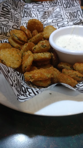 Family of 3 just ate there last night, and the food was terrible! The loaded Nachos and Pulled Pork Sammy with soup both were completely dried out! You could tell that these food items had been left sitting for a while before they were brought to the table,which probably explains why it took so long to get our food. It looks like they tried to toast or possible re-heat the nachos because the edges of the chips were very darkened. The pulled pork on the sandwhich and the nachos both had a terrible taste. If I had know that bbq sauce is something they added to their loaded cheese fries I wouldnt have ordered them. It was nasty, and you would think that the server would have had those fries taken off after being told that they were not good and seeing a barley touched appetizer. The one platter that was ordered he said it was ok, and the fried pickles and the flavored teas were the only food items that were decent. No manager came out to the table but the nachos and sandwhich was taken off. This is a meal that shouldnt have had to be paid for at all. Its been 6 years since the first time I visited Smokey Bones, and now I remember why we stop coming (foods not good) 48.16 was my checks total after items were taken off, and two of us didnt even get to eat a meal. We waisted all that time and still had to find somewhere else to eat afterwards at 930pm at night and pay for more food. We will never return to this restaurant again.,