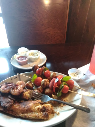 The food was tasty--I had a NY Reuben with grilled fish and veggie kabobs and my date had the Portabello burger. Both came out hot and quick. Server was friendly but slow. The inside restaurant smelled funny, but otherwise was nice looking. Sitting outside by the creek was pleasant.
