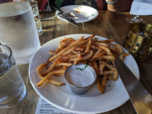 First: the BEST fries in Columbus, hands down. A coworker recommended the Rossi Happy Hour on this fact alone, and I was not disappointed--I could probably drink the garlic aioil that they serve with it! A friend and I went for happy hour and were a little disappointed in the drink specials, but the food made up for it. We split the buratta and stone fruit appetizer and it was delicious, I wont go back again without ordering it. We both had the burger and fries for dinner and as I said above, the fries are absolutely delicious. The burger was solid, too and Id order it again. Best part? Dinner with an appetizer at under $15 each.