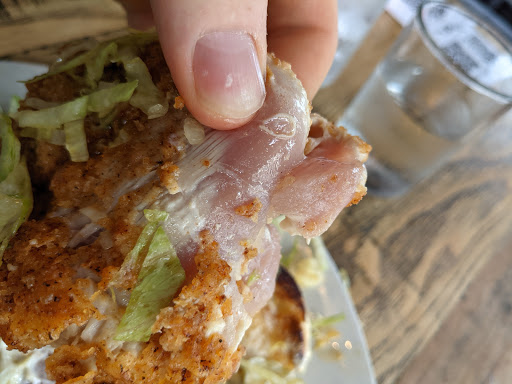 The staff is extremely friendly, and food was great American fare. Definitely looking forward to coming back. The burger is quite good, though it didnt feel like it had a signature flavor that made it unique. The Caesar Salad has a great presentation and is served with prosciutto, making it a standout. The drink I had was fine. I suspect the menu cocktails are quite good but I didnt get a chance to try them, opting instead for the bartenders choice.