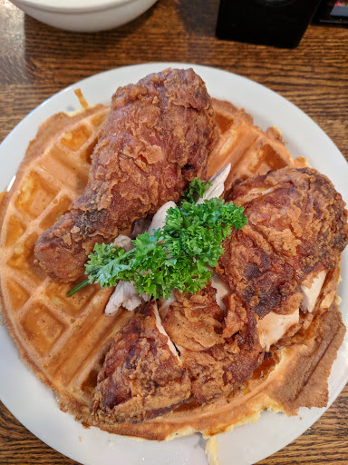 My first visit to this cafe will result in a second, and probably many visits. The location is surprisingly easy to find, with ample parking right out front, and very close to the freeway exit at Cooke Road. They opened promptly at 7:00 a.m. The service was excellent, never an empty cup, and the food arrived quickly on heavy warmed plates. Their menu is simple, but thorough, with all the standard breakfast fare, and a few pleasant surprises. I enjoyed the skillet scrambler, and it was delicious. The potatoes were cooked well, not over done, but could use a little spice in my opinion. This is a warm and friendly location with a classic diner counter and heavy wood tables. We could comfortably stay there for hours.